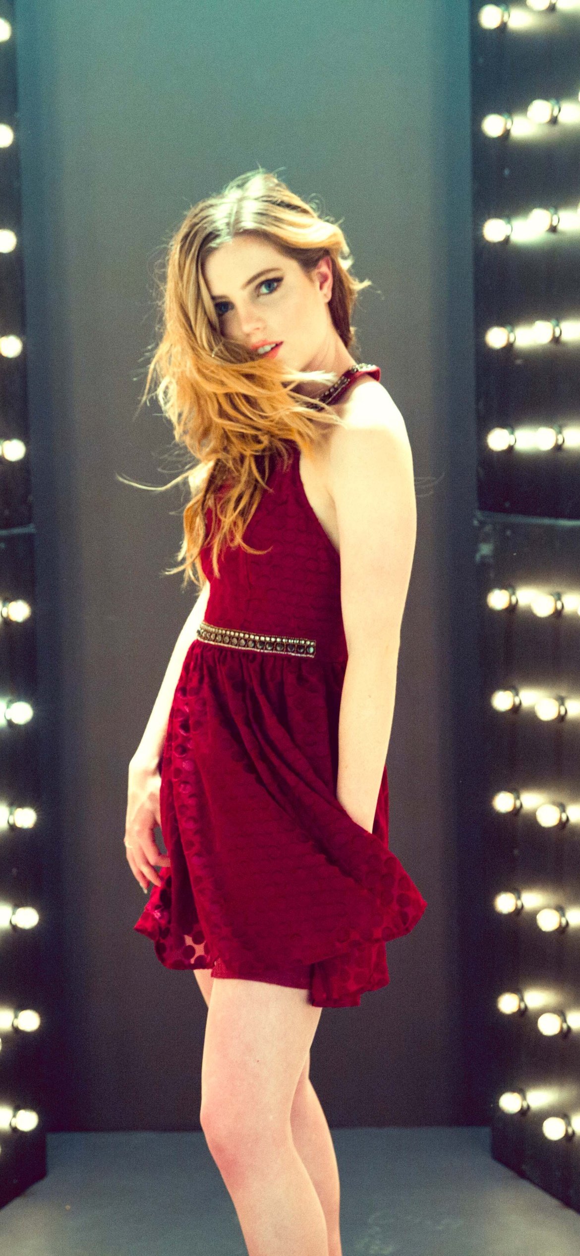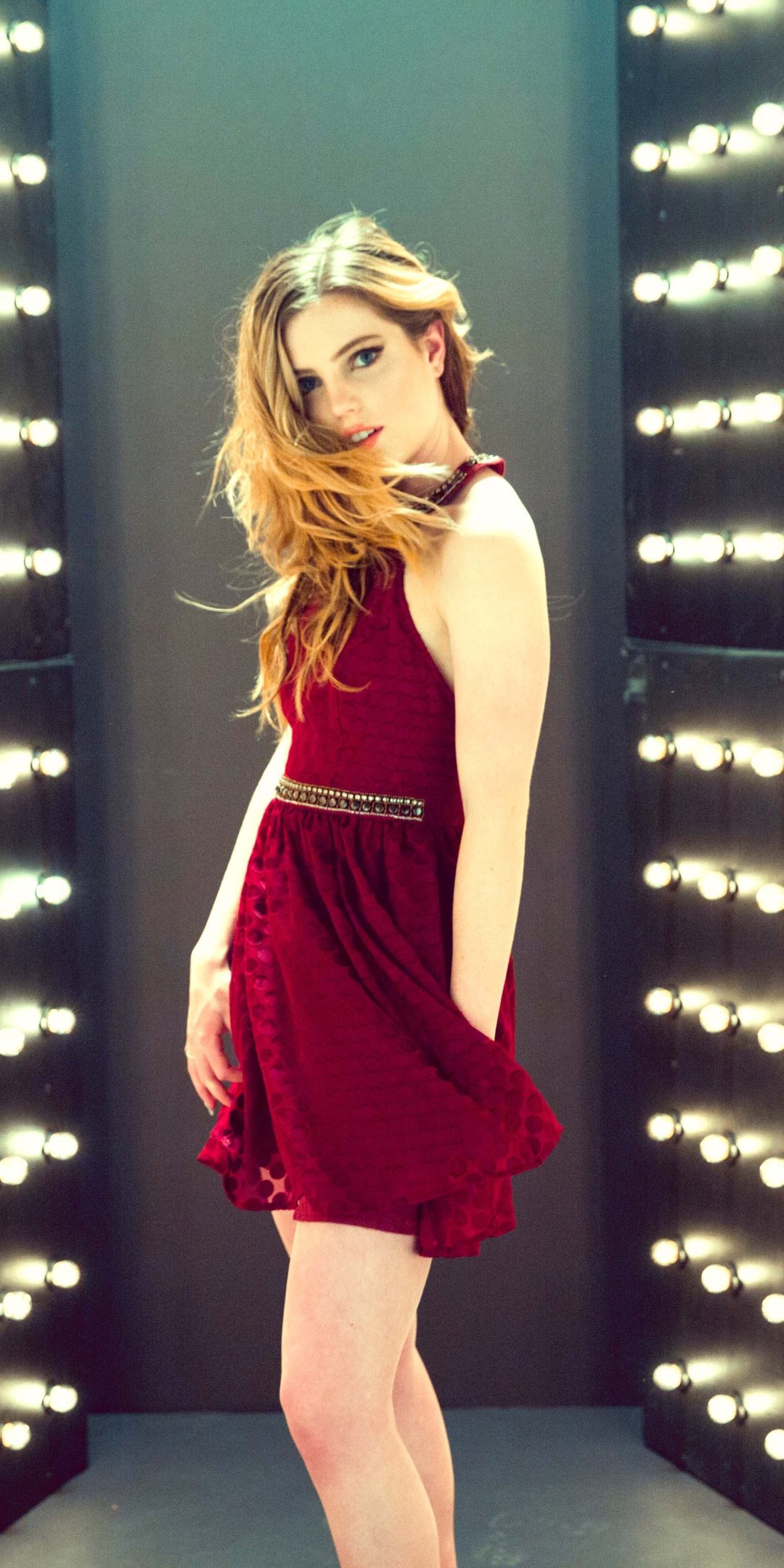 Download this Sydney Sierota Red Dress Light Tunnel Wallpaper and immerse your screen in glamour and radiance. Sydney stands poised in a tunnel of dazzling lights, her crimson dress glowing against the endless rows of bulbs that stretch into infinity. The warm illumination highlights every detail of the fabric as it dances with the soft movement of her pose, creating a cinematic fusion of elegance, attitude, and allure. Each reflection adds depth and dimension, turning a simple portrait into an ethereal moment frozen in light.