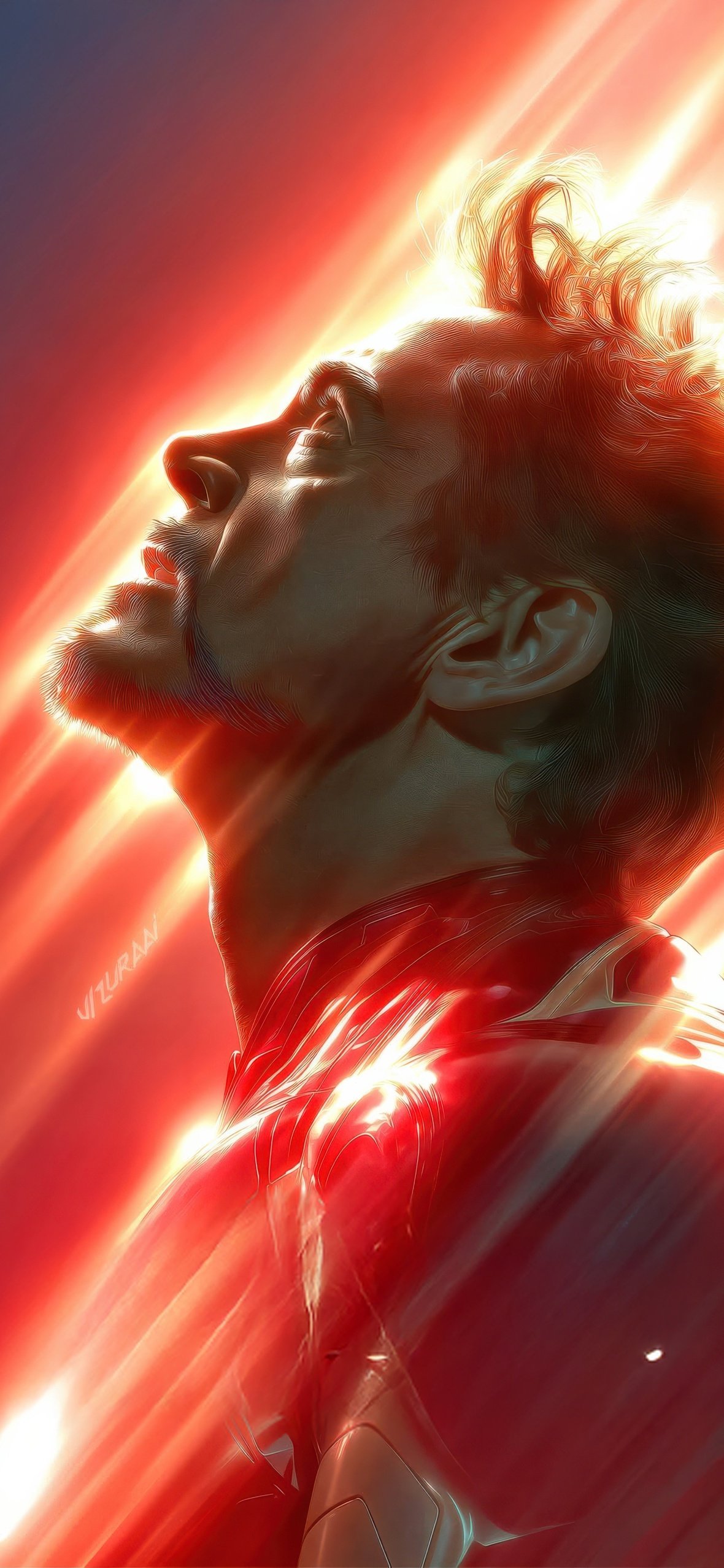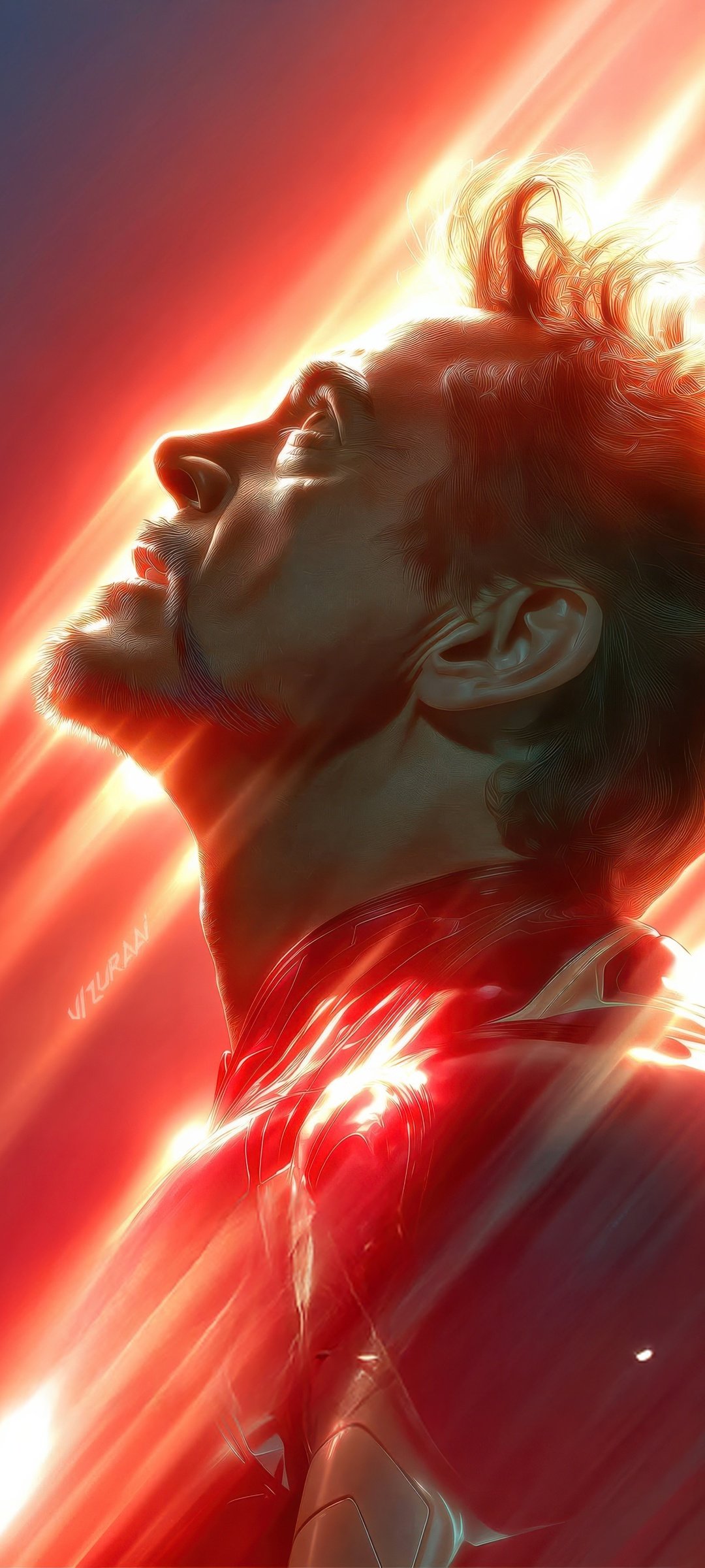 Download this Iron Man Energy Beam Portrait UHD Wallpaper and witness the raw surge of power and sacrifice as Tony Stark stands illuminated by blazing energy, embodying brilliance, resilience, and the cost of being a hero.