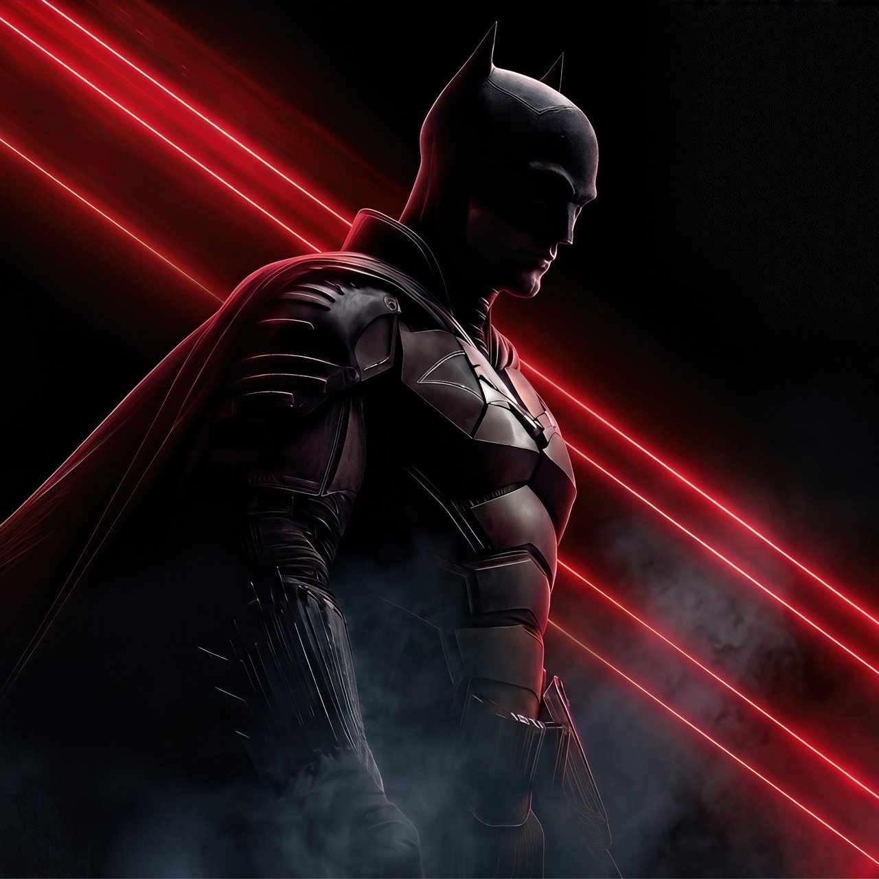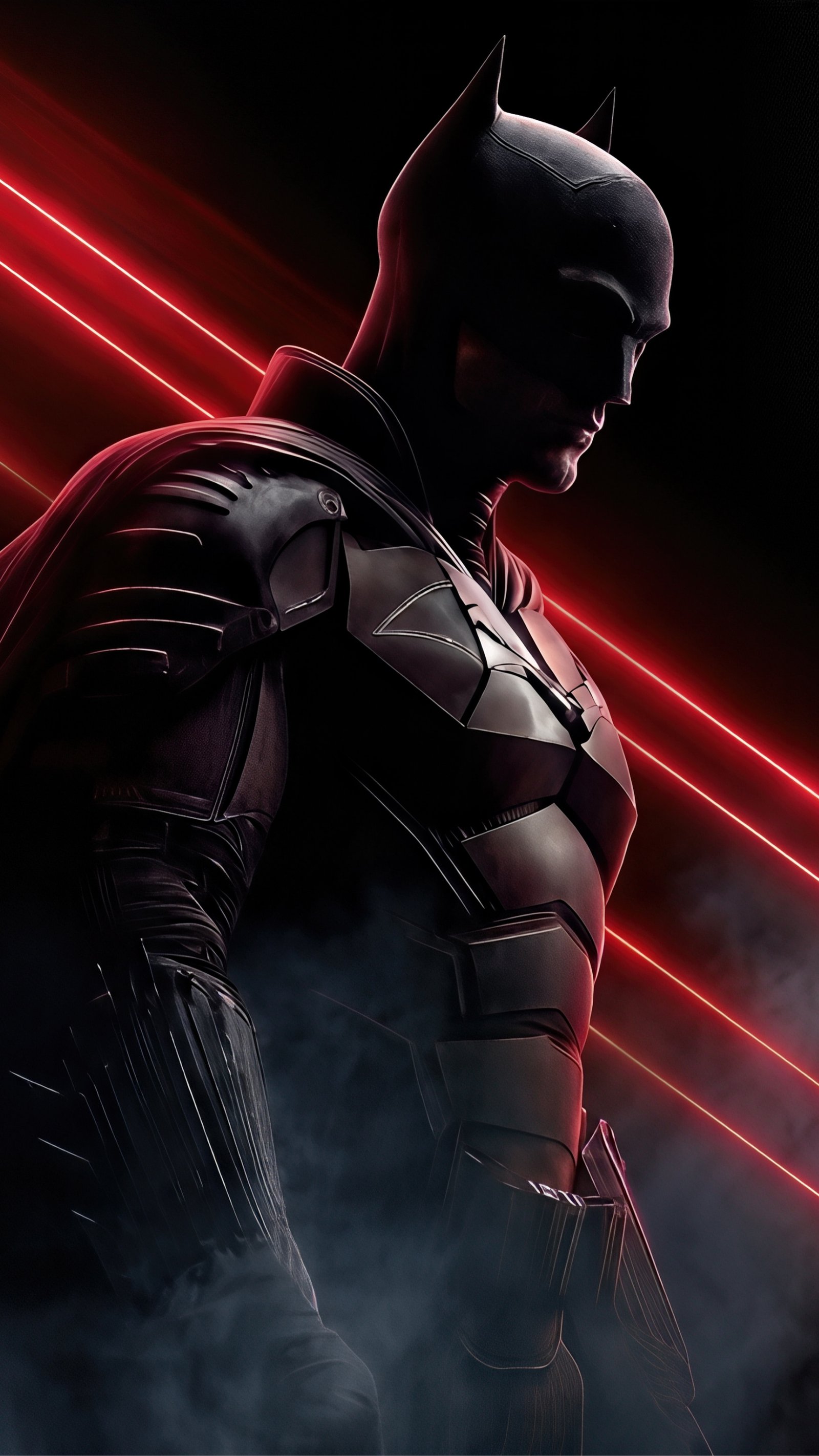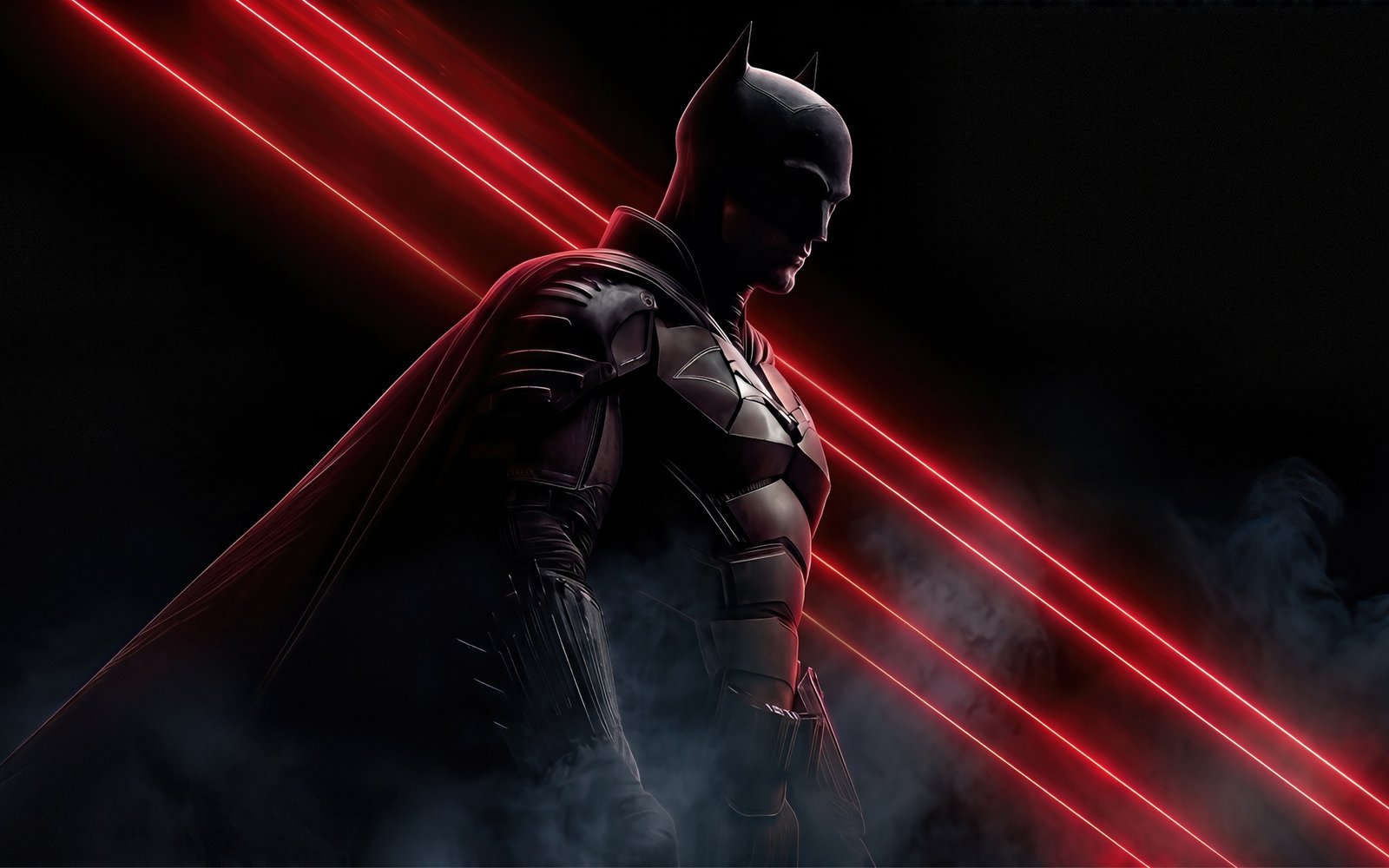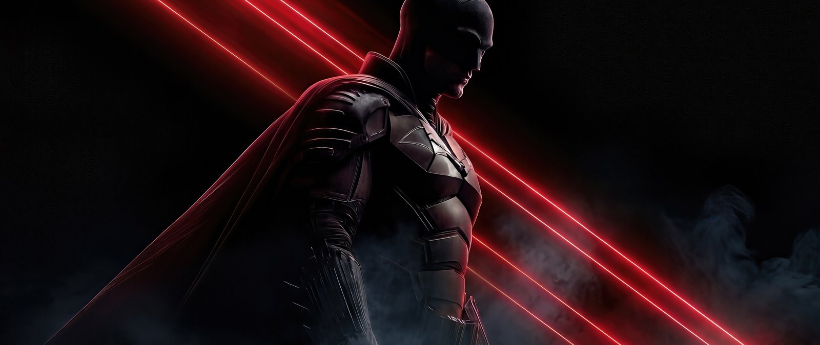 Download this The Batman Red Laser Shadow UHD Wallpaper and step into the shadows of Gotham with a striking blend of darkness, red laser beams, and powerful presence.