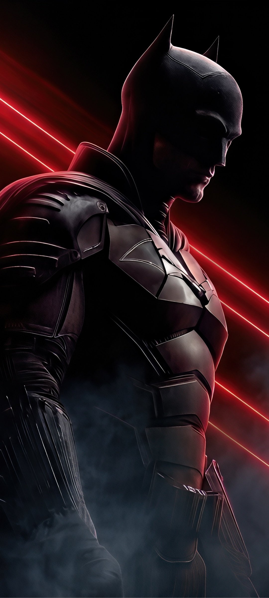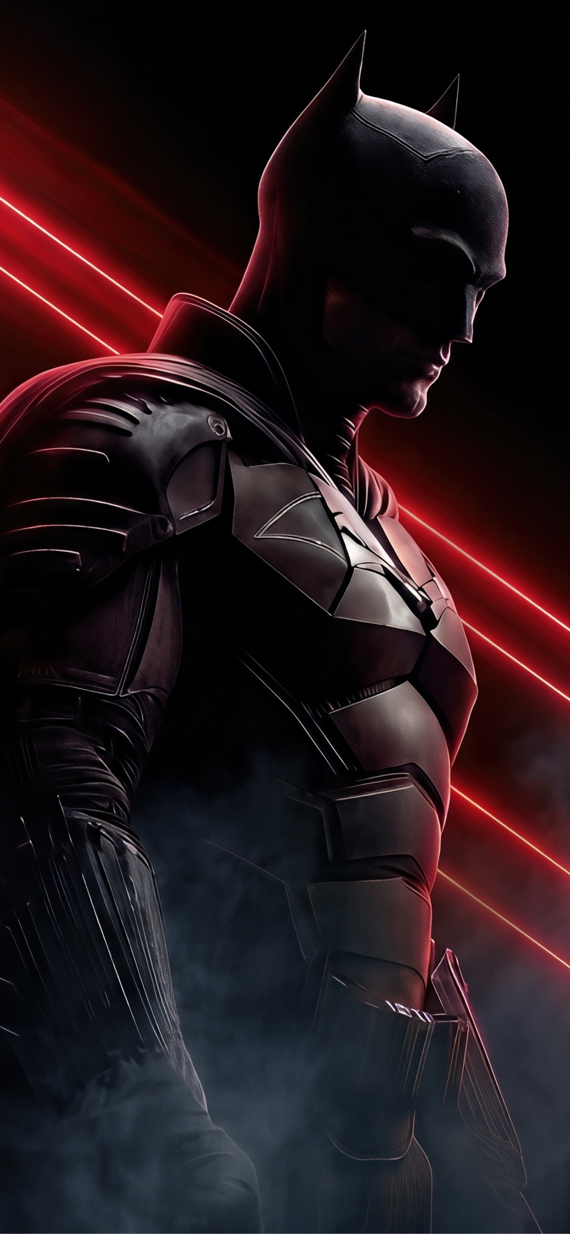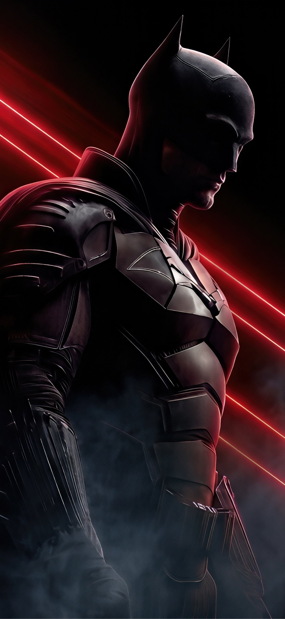 Download this The Batman Red Laser Shadow UHD Wallpaper and step into the shadows of Gotham with a striking blend of darkness, red laser beams, and powerful presence.