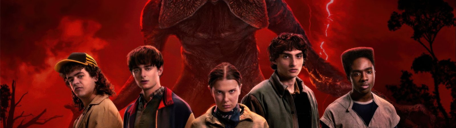 Download this Stranger Things Season 5 Dark Encounter Wallpaper and step into the eerie tension of the Upside Down’s final awakening. A group of determined teens stands united under a blood-red sky, their expressions hardened by the horrors they’ve faced. Behind them towers a monstrous creature born of shadows and lightning, its form crackling with dark energy as the world around them warps and trembles. The fiery atmosphere and ominous silhouettes create a chilling blend of supernatural dread and unbreakable courage.